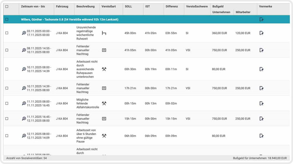 Lenk- und Ruhezeiten prüfen und mögliche Bußgelder sofort erkennen
