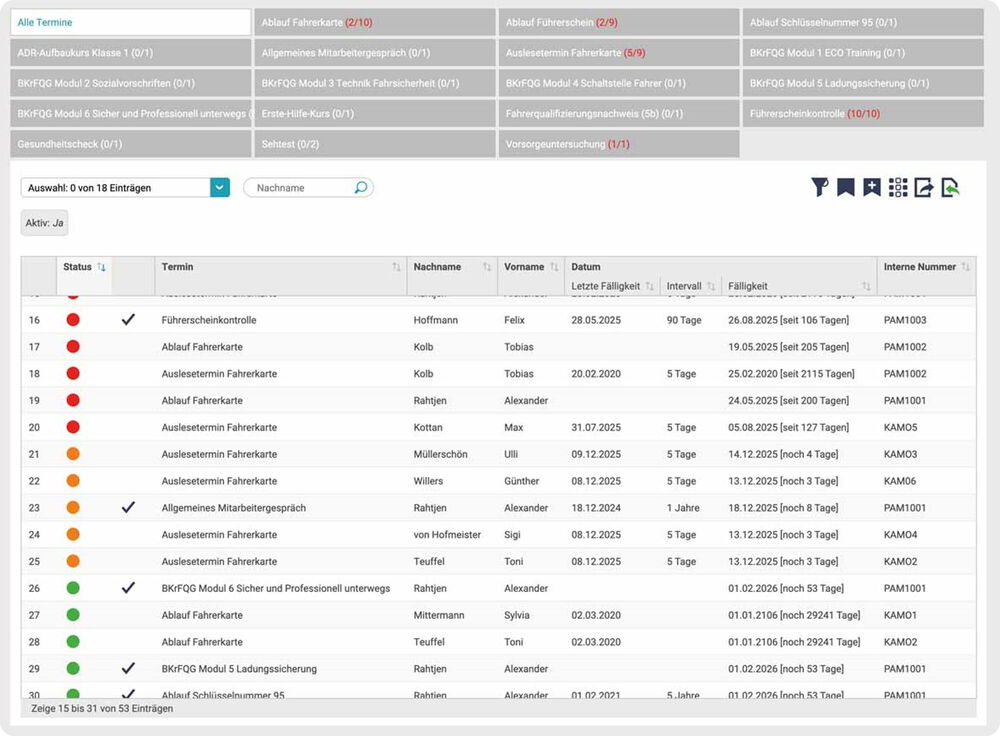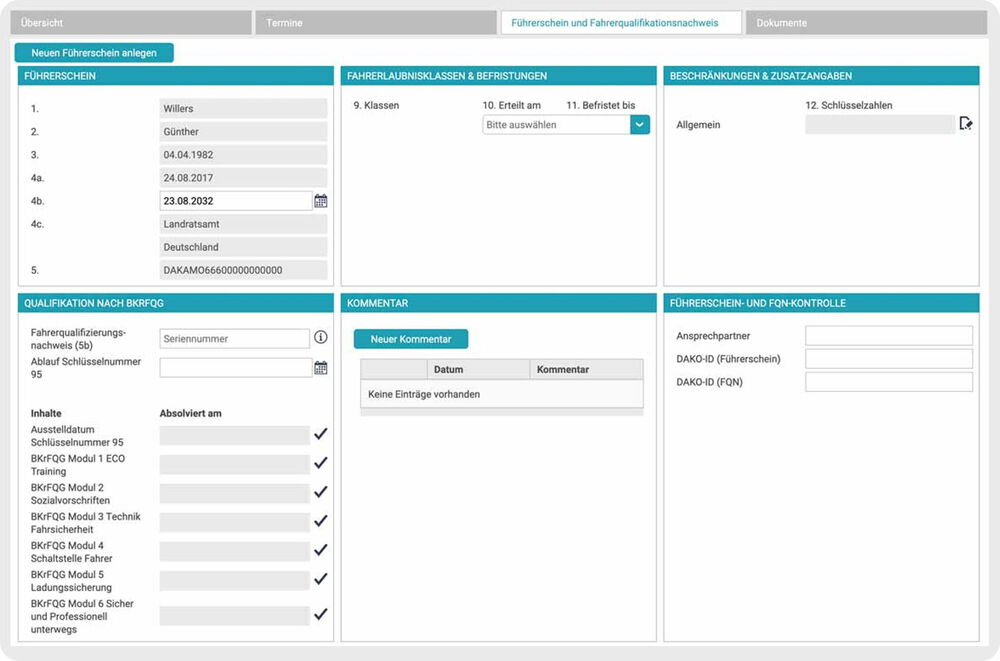 Alle Dokumente rund um Ihre Mitarbeiter und Fahrzeuge werden zentral in einer digitalen Akte verwaltet.